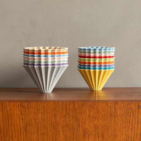 Origami M Dripper, inspirovaný japonským uměním skládání papíru, spojuje originální vzhled s dokonalou funkčností. Dvacet svislých žeber vytváří prostor mezi filtrem a dripperem, čímž zajišťují rovnoměrný průtok vody a stabilní extrakci.