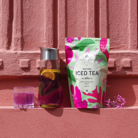 Cold Brew is very easy to prepare. Simply place a bag of Iced Tea in a carafe of cold water and let it sit in the fridge for 6-12 hours. The longer you let the tea steep, the more intense the flavour will be. If you want to make a concentrate, use only half the amount of water. You can store the concentrate in a smaller container in the fridge and make a single serving of iced tea as needed.