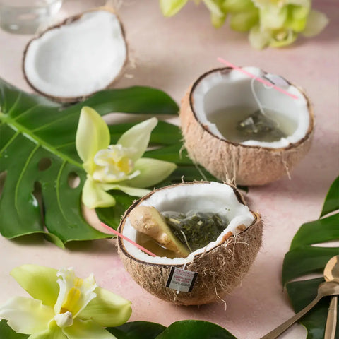 This delicious tea blend brings together the diverse flavors of Thailand – green tea, coconut, lemongrass, ginger and vanilla complement each other perfectly. Ideal for those seeking an exotic experience in every cup.