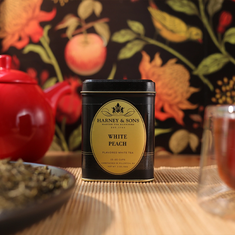 A delicate white tea with notes of sweet peach and a hint of vanilla for a perfectly balanced cup.