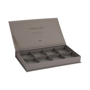 Linen tea cassette is an excellent solution for an elegant and practical presentation of teas. Its high-quality workmanship and natural material make it a luxurious accessory for restaurants, hotels and offices. Photos are for illustrative purposes only, the cassette is not filled with tea.