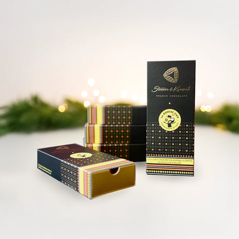 Kollaborace Stejner & Kovařík x La Bohème přináší výběrovou sumaterskou kávu z úpatí hor Kerinci, obalenou v jemné mléčné čokoládě. Sopečná káva s čistou, vyváženou chutí se snoubí s krémovou sladkostí čokolády – dokonalá kombinace pro milovníky kávy i mlsání.